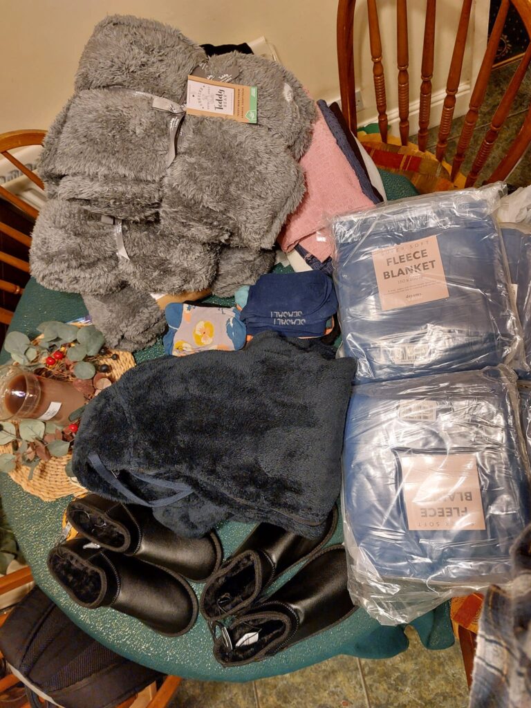 Huge thanks to Margaret in Wetherby for an amazing donation of new boots, fleece jackets, fleece blankets, jumpers and socks! It was lovely to meet you in your home and chat more about our work. Thank you for your support!